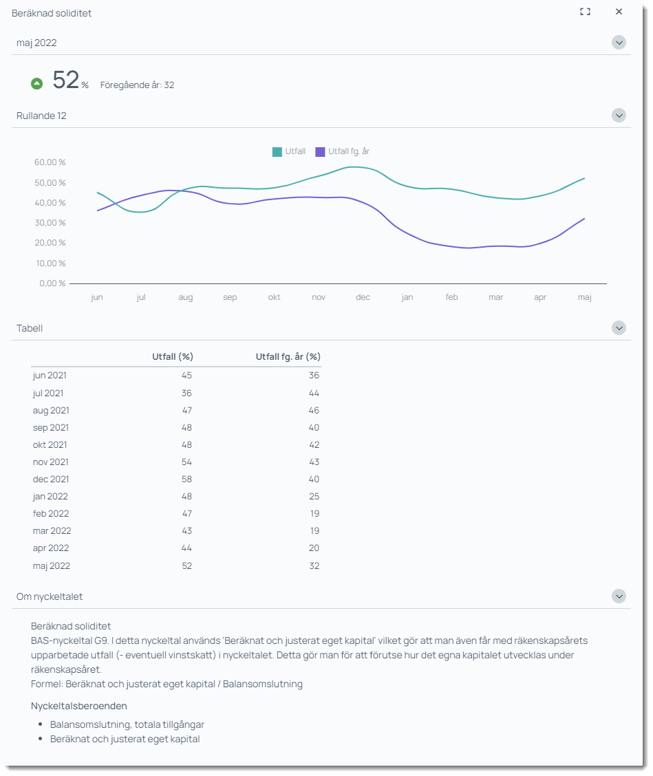 - För att förstå hur ett specifikt nyckeltal beräknas och vad det representerar, klickar du på ”Om nyckeltalet”. Detta ger dig full transparens och hjälper dig att tolka datan korrekt.