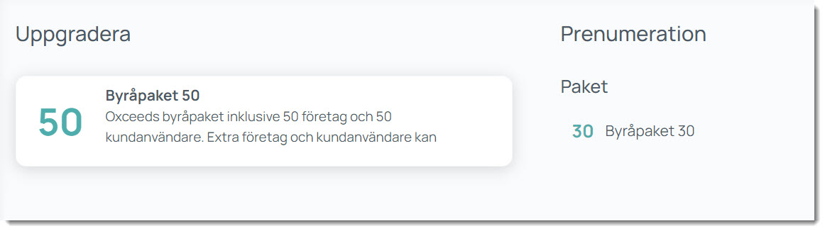 - Licensuppgradering: För byråprenumerationer och direktkundsprenumerationer med utökade möjligheter kan du uppgradera din prenumerationslicens direkt från tilläggssidan.